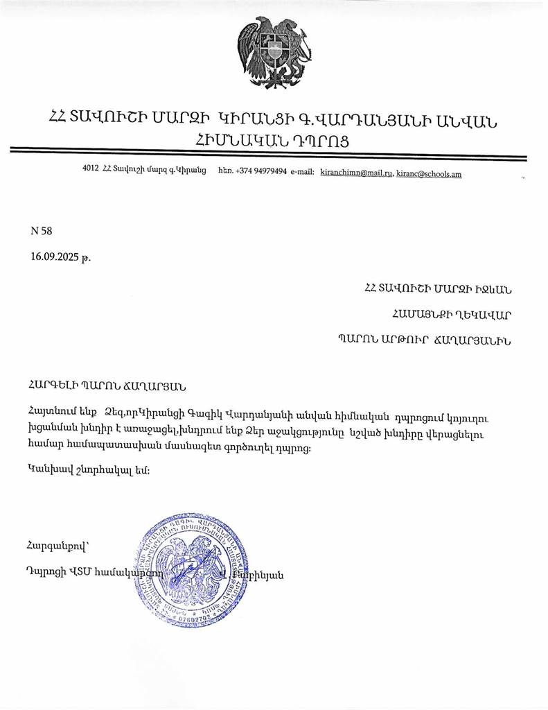 Պաշտոնական էլ. փոստ`
